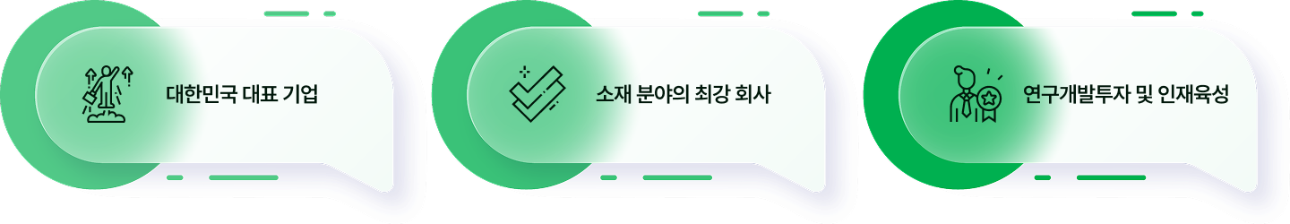 세계 최초, 세계 최고의 혁신 소재를 지속적으로 연구 · 개발하여 첨단 기술기업으로 성장하고, 세계 각 권역에 공장을 세우고 판매망을 구축하며 글로벌 인재를 등용하여 고용을 창출함으로써, 세계를 무대로 성장하는 대표 기술기업으로 도약하겠습니다.